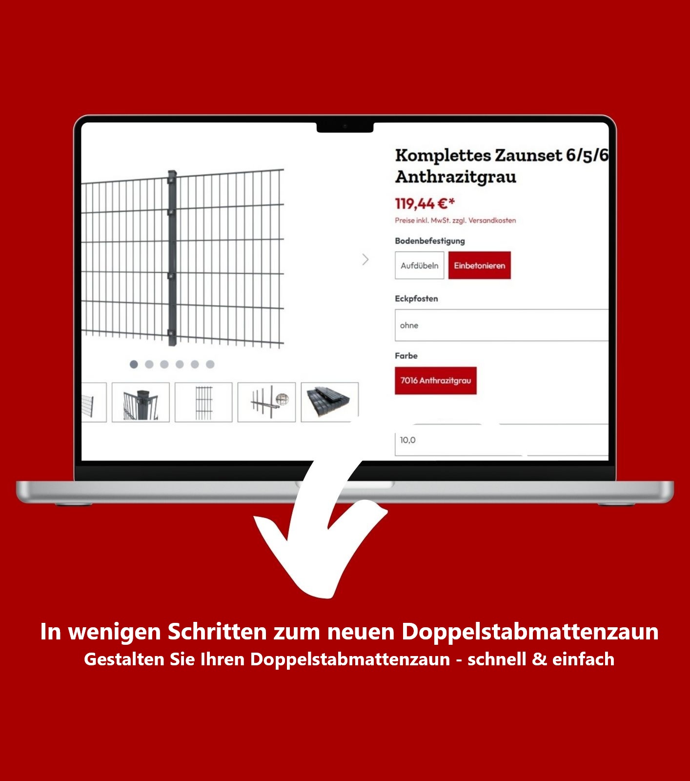 So erschaffen Sie mit wenigen Klicks Ihren neuen Doppelstabmattenzaun, ganz nach Ihren Vorstellungen.